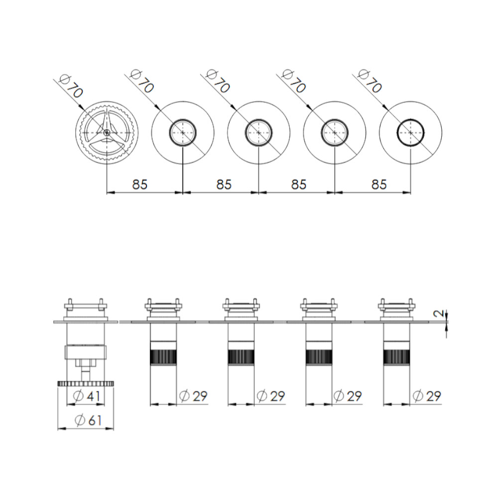 Średnica rozet: 70 mm