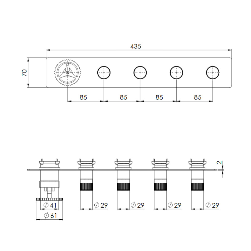 Remer Chrono Bateria wannowo-natryskowa podtynkowa 4-drożna - element zewnętrzny Brushed Gold CH98D4WBBG