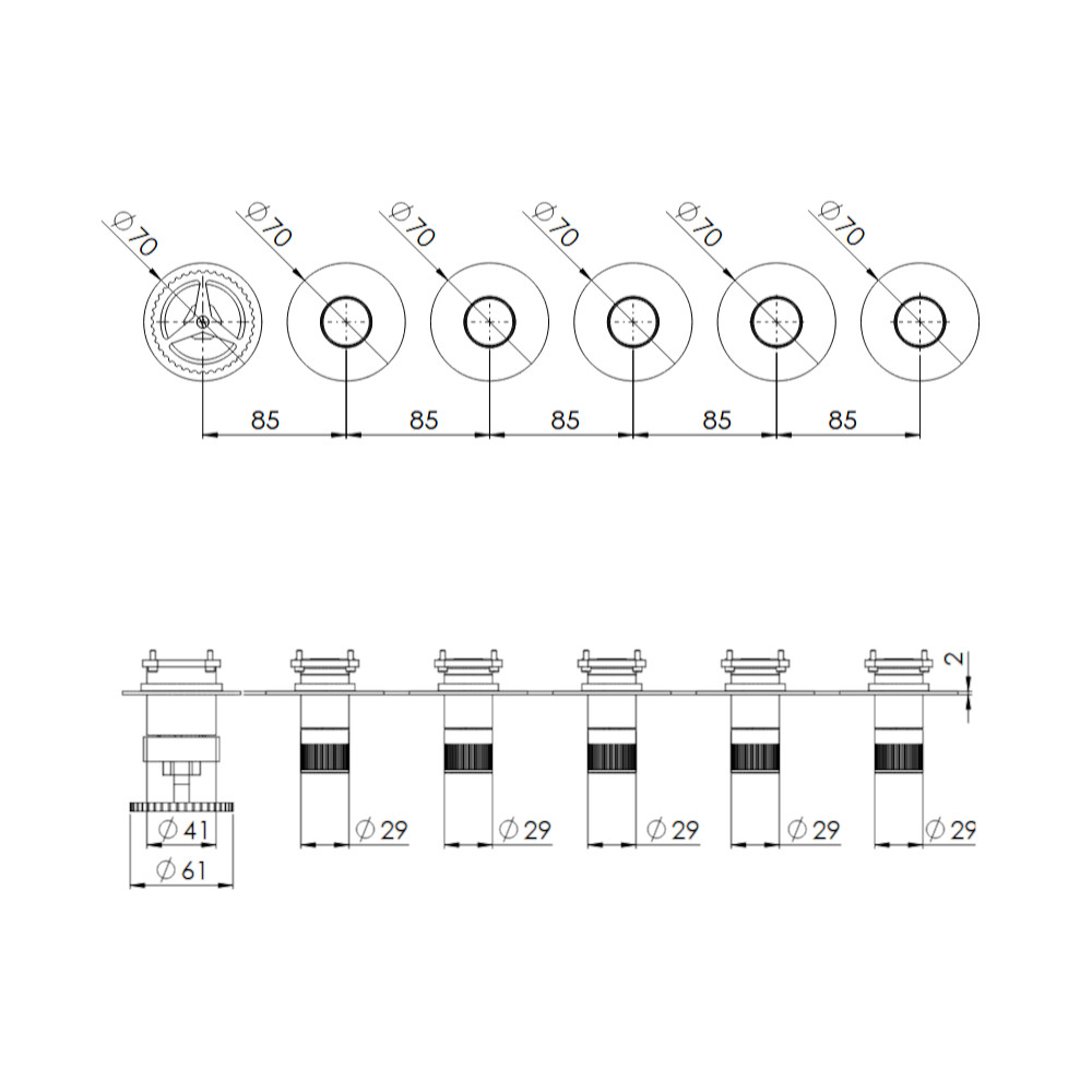 Średnica rozet: 70 mm