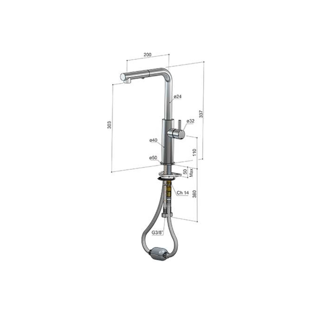 Hotbath Fellow Bateria kuchenna z wyciąganą wylewką dwufunkcyjną Steel Brushed FKM33.IX