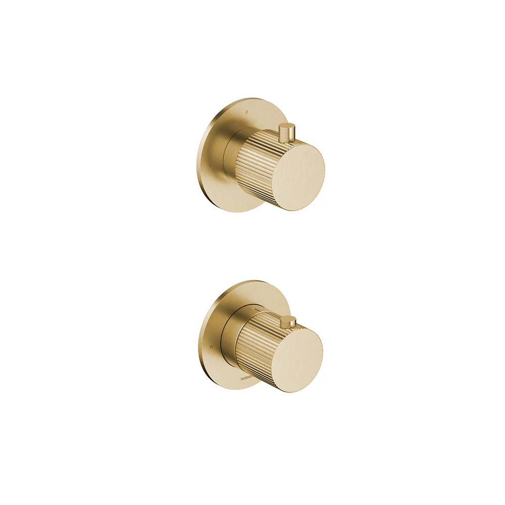 Hotbath Guy Row Bateria natryskowa termostatyczna podtynkowa 2-drożna - element zewnętrzny Brushed Brass PVD GY7009R.BBP