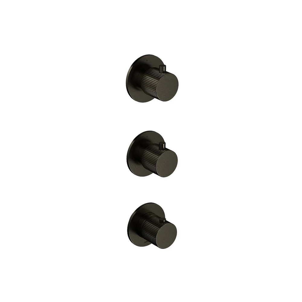Hotbath Guy Row Bateria natryskowa termostatyczna podtynkowa 2-drożna 3-uchwytowa - element zewnętrzny Matt Black PVD GY7066R.MBP