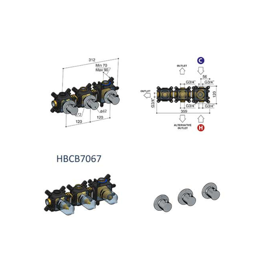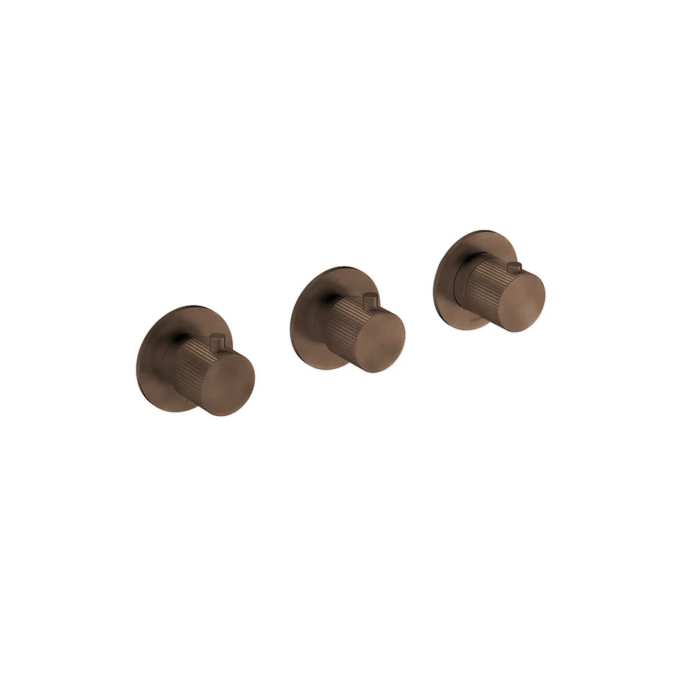 Hotbath Guy Row Bateria natryskowa termostatyczna podtynkowa 2-drożna 3-uchwytowa - element zewnętrzny Tuscan Bronze GY7067R.TB
