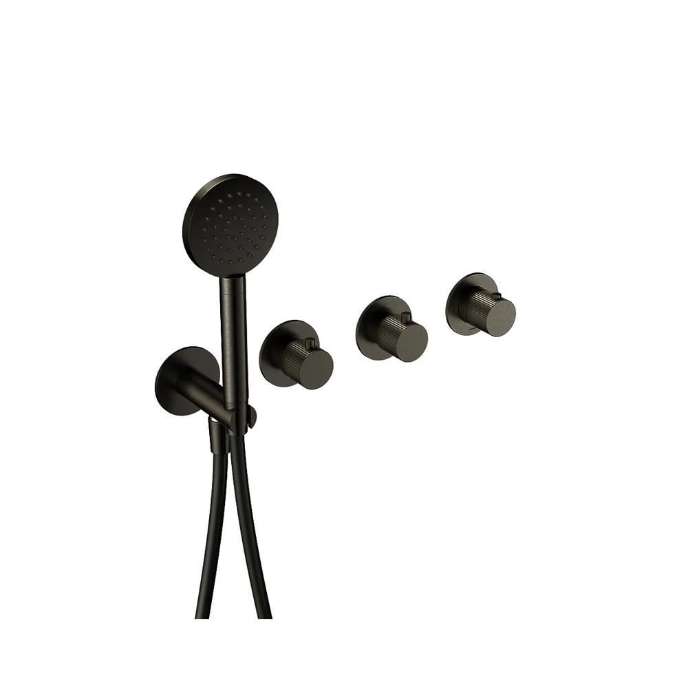 Hotbath Guy Row Bateria wannowa termostatyczna podtynkowa, z dwoma zaworami i słuchawką prysznicową - element zewnętrzny Matt Black PVD GY7071R.MBP