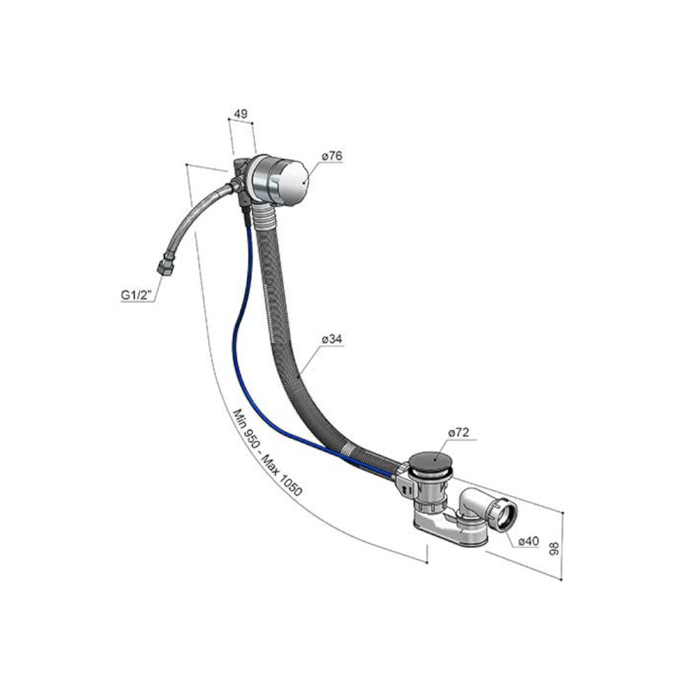 Długość przelewu: 950 - 1050 mm