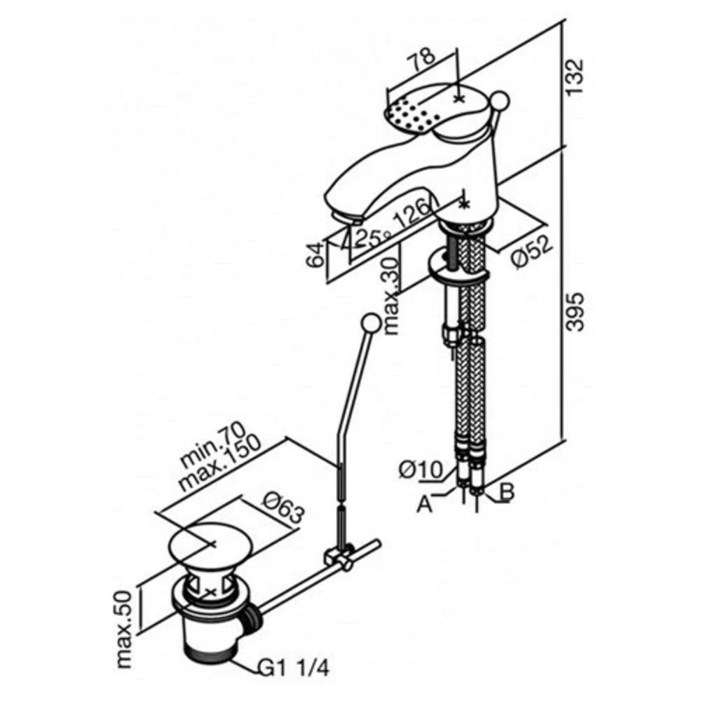 Damixa Jupiter Bateria umywalkowa z korkiem chrom 159210015