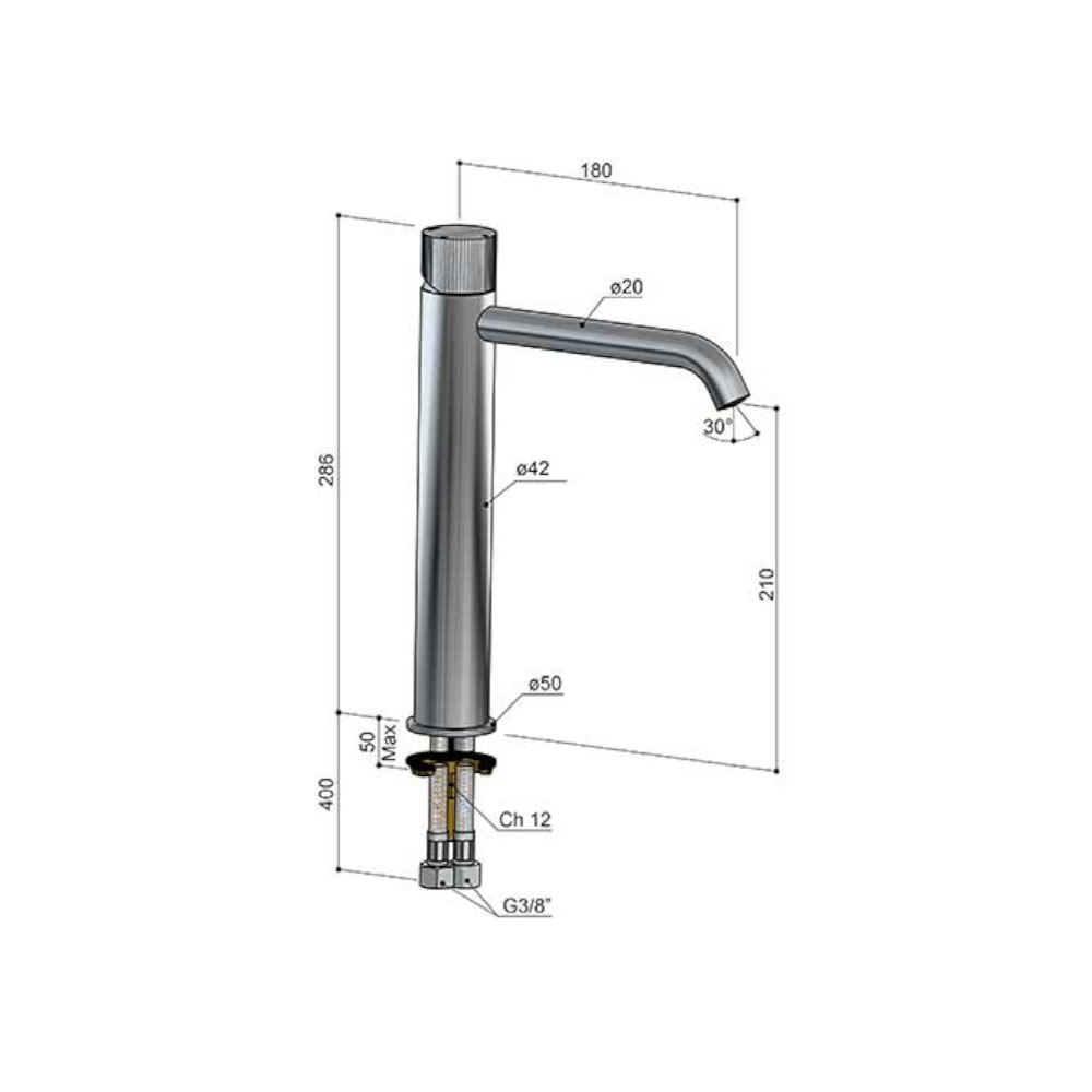 Hotbath Guy Diamond Bateria umywalkowa jednouchwytowa Wysoka Brushed Nickel GY003HD.GN