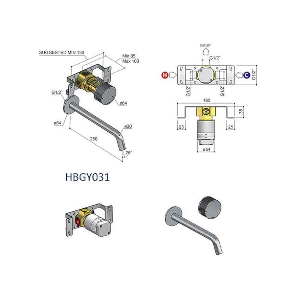 Hotbath Guy Diamond Bateria umywalkowa podtynkowa 250 mm - element zewnętrzny Brushed Nickel GY005D-25.GN