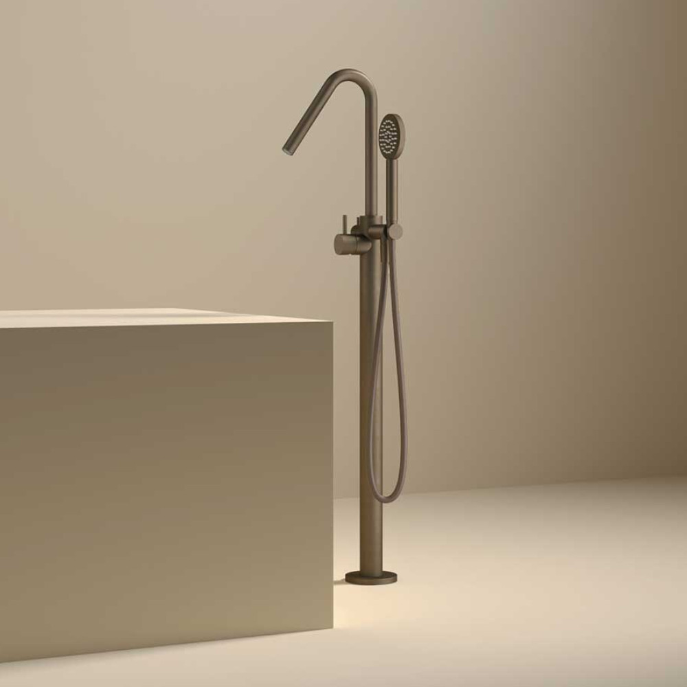 Hotbath Guy Diamond Bateria wannowa wolonostojąca ze słuchawką prysznicową i wężem prysznicowym Tuscan Bronze GY177D.TB