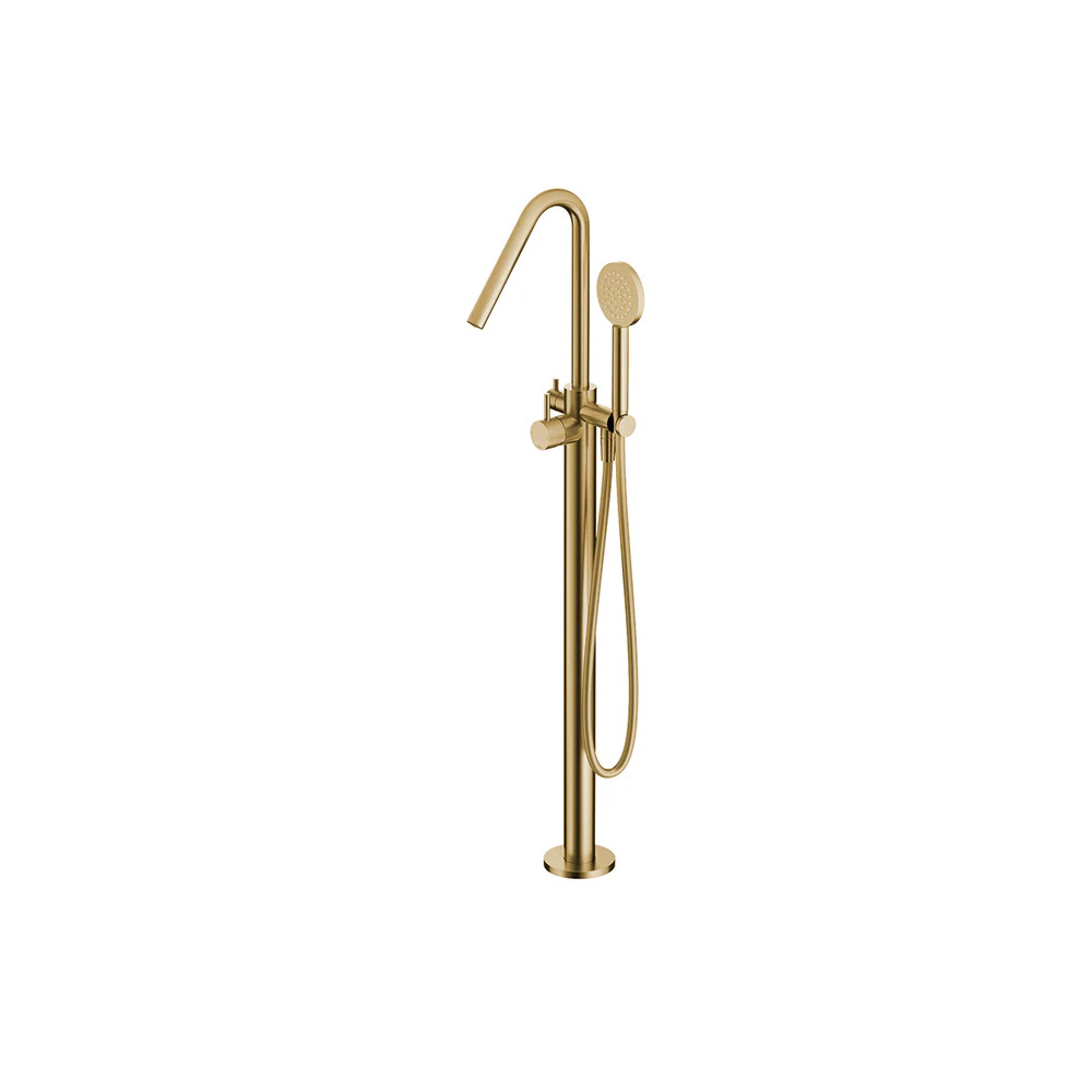 Hotbath Guy Diamond Bateria wannowa wolonostojąca ze słuchawką prysznicową i wężem prysznicowym Brushed Brass PVD GY177D.BBP