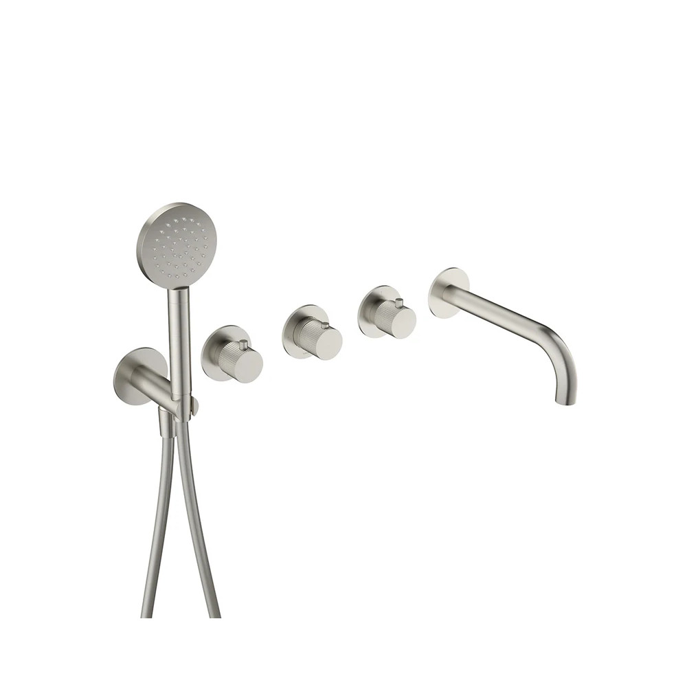 Hotbath Guy Diamond Bateria wannowa termostatyczna podtynkowa z wylewką i słuchawką prysznicową 2-drożna - element zewnętrzny Brushed Nickel GY7072D.GN