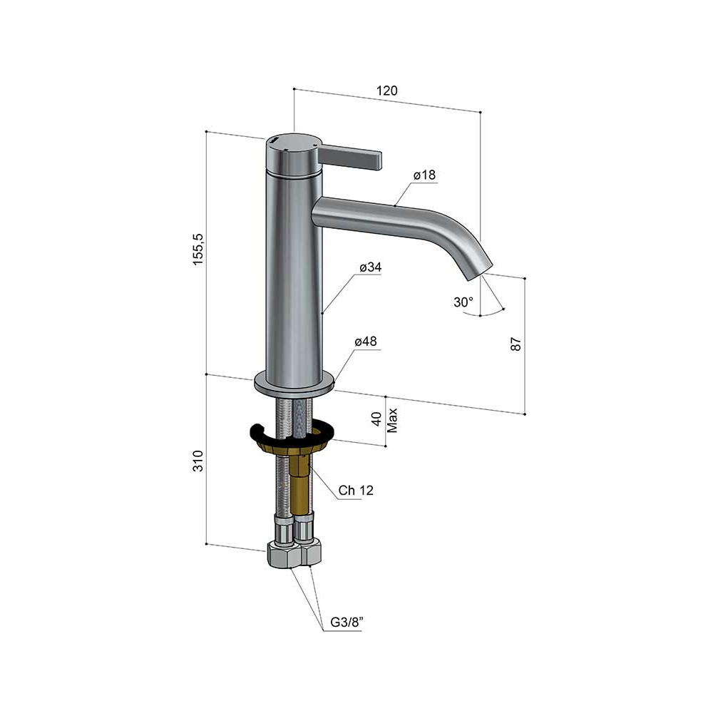 Wysięg wylewki: 120 mm