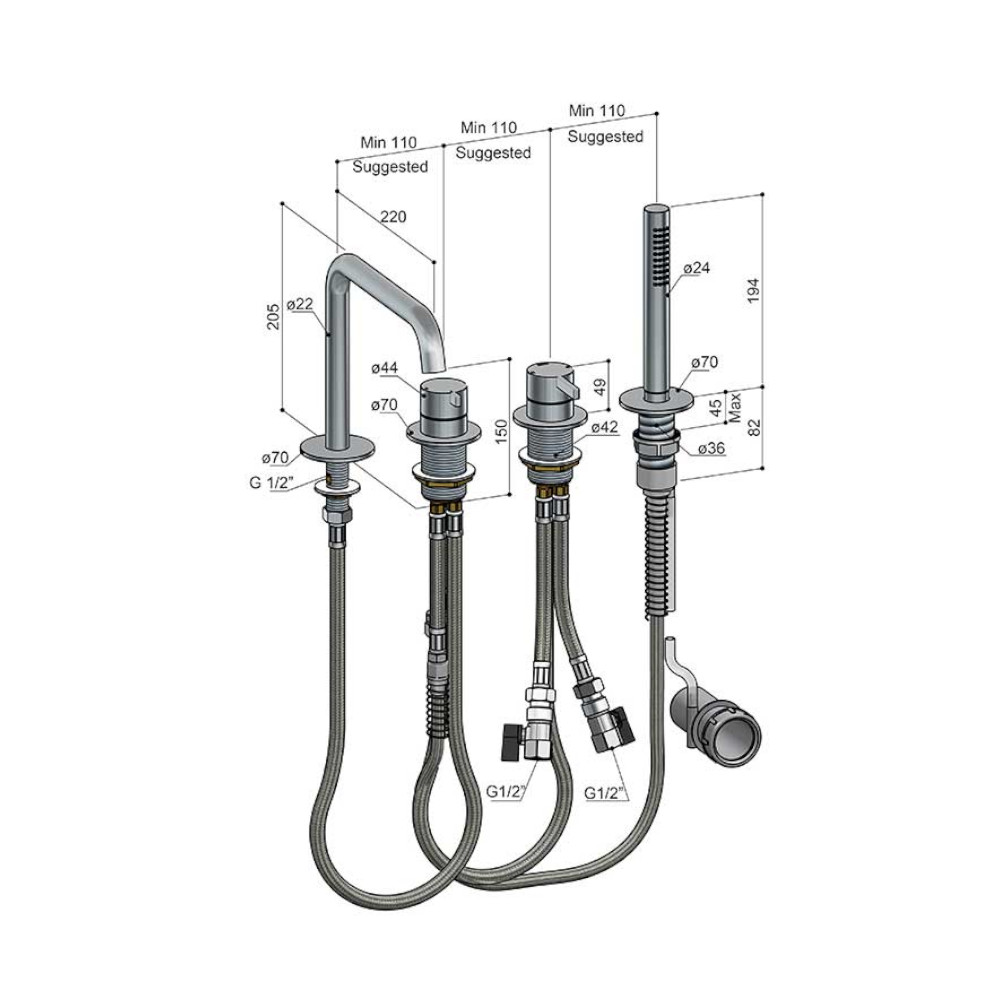 Rozstaw pomiędzy otworami: 110 mm