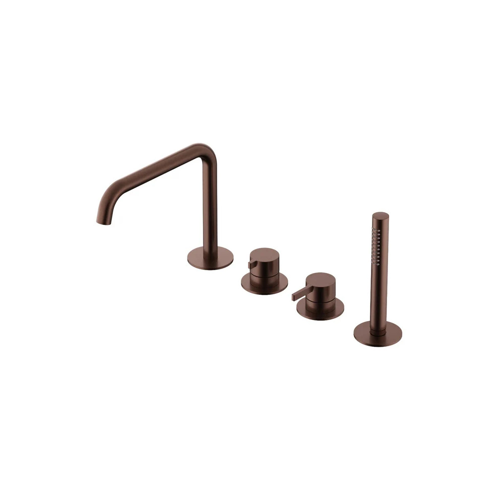 Hotbath Ace Bateria wannowa 4-otworowa z wylewką i słuchawką prysznicową Brushed Copper PVD AC073.BCP