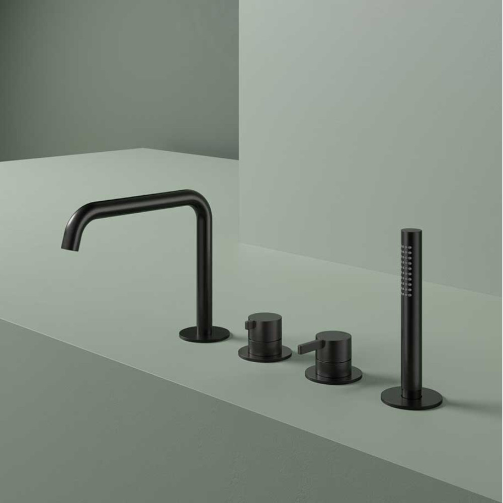 Hotbath Ace Bateria wannowa 4-otworowa z wylewką i słuchawką prysznicową Matt Black PVD AC073.MBP