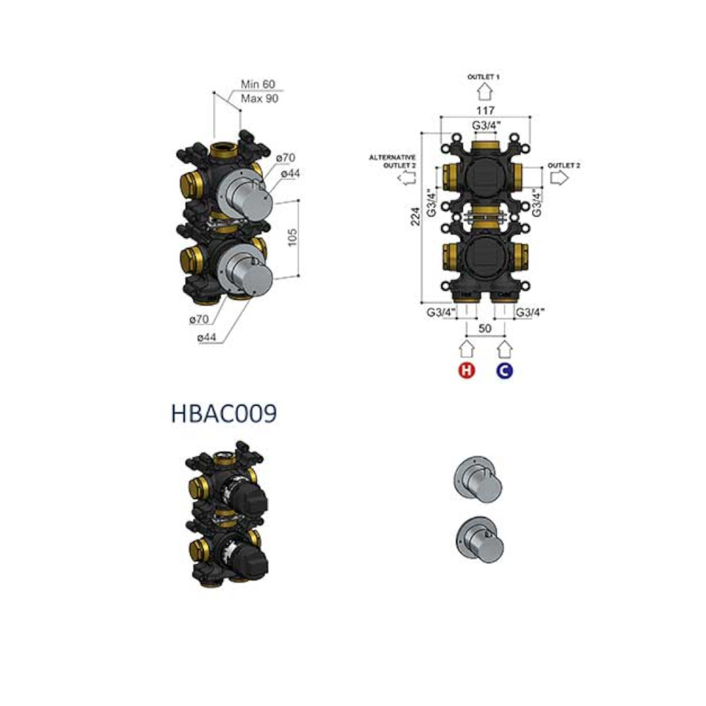 Hotbath Ace Bateria natryskowa termostatyczna podtynkowa 2-drożna - element zewnętrzny Chrom AC009.CR