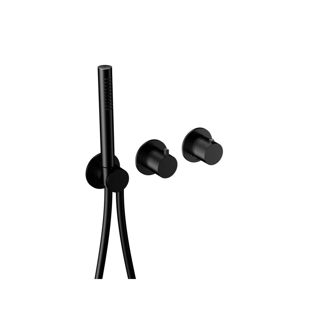 Hotbath Ace Bateria natryskowa termostatyczna podtynkowa, z dwoma zaworami i słuchawką prysznicową - element zewnętrzny Matt Black PVD AC071.MBP