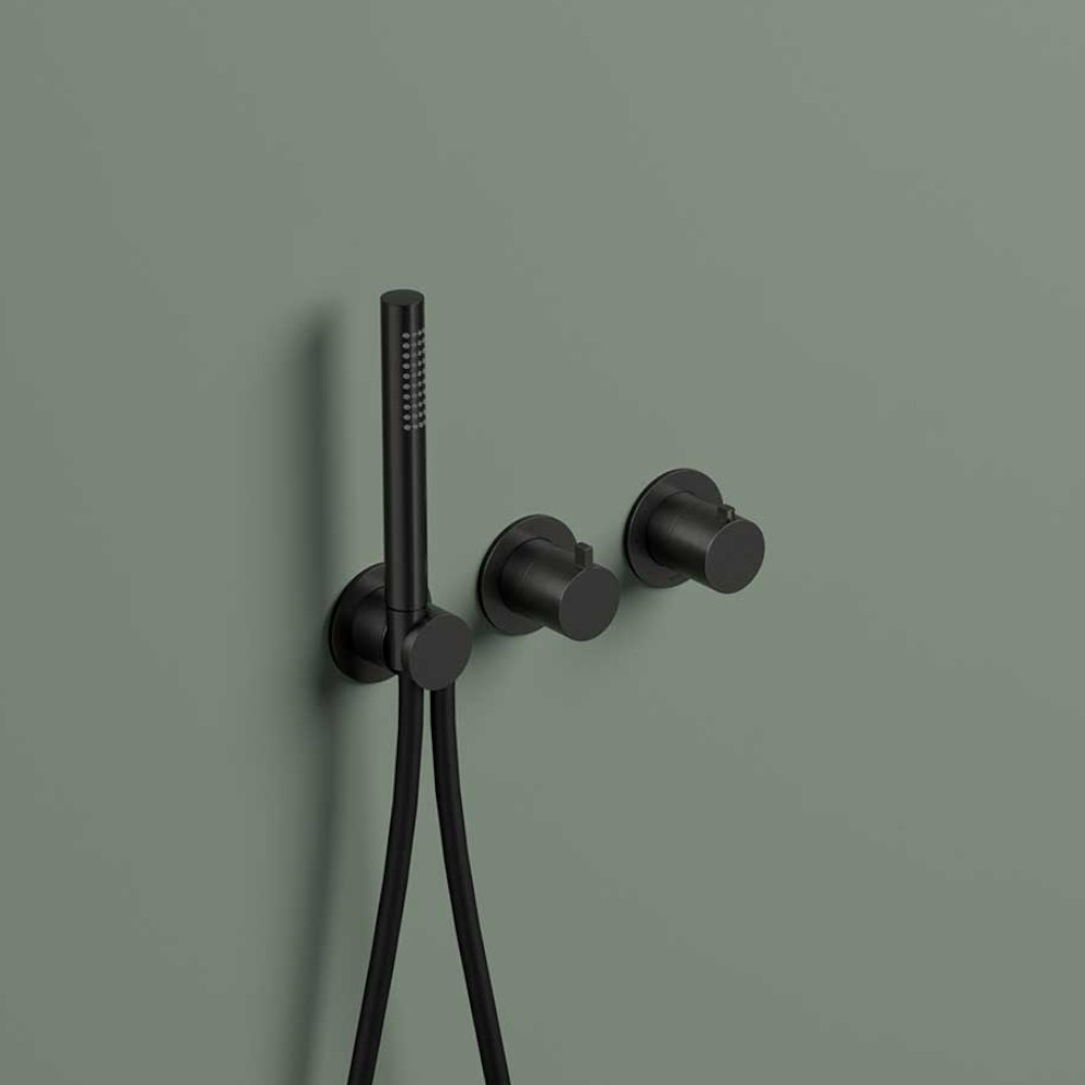 Hotbath Ace Bateria wannowa termostatyczna podtynkowa z wylewką i słuchawką prysznicową 2-drożna - element zewnętrzny Matt Black PVD AC072.MBP