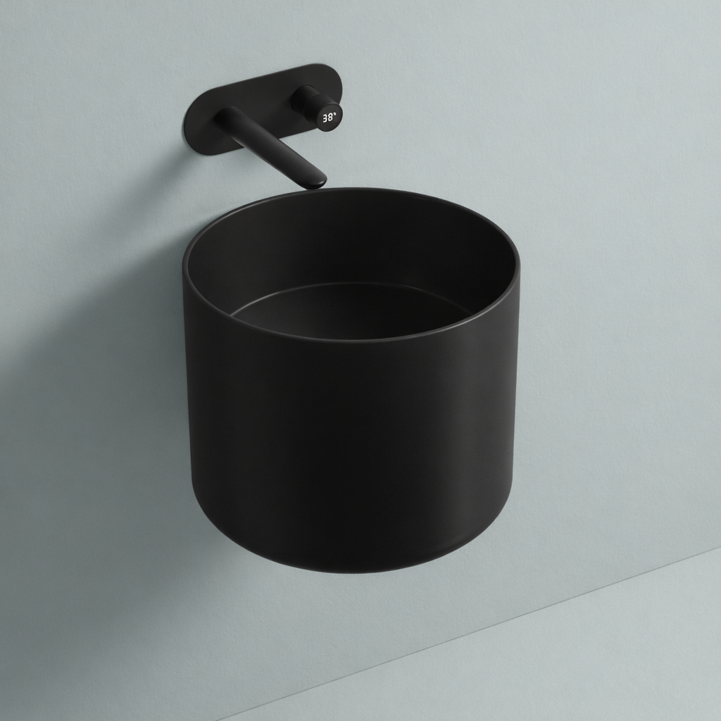 Umywalka montowana na ścianie nadaje wnętrzu lekkości i nowoczesnego charakteru, a brak przelewu oraz otworu na baterię podkreśla jej minimalistyczny design. Model przeznaczony jest do baterii ściennych lub sufitowych.