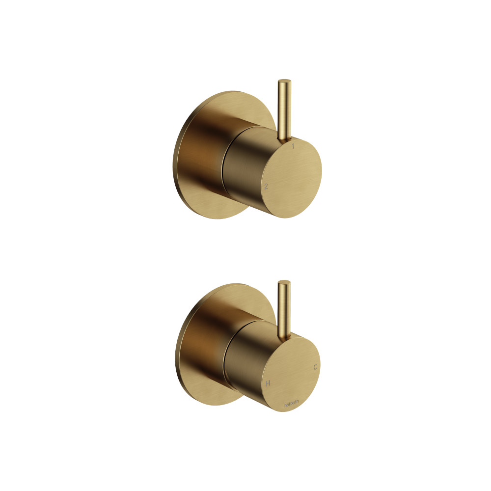 Hotbath Cobber Bateria natryskowa podtynkowa 2-drożna z zaworem odcinającym - element zewnętrzny Brushed Brass CB129.BB