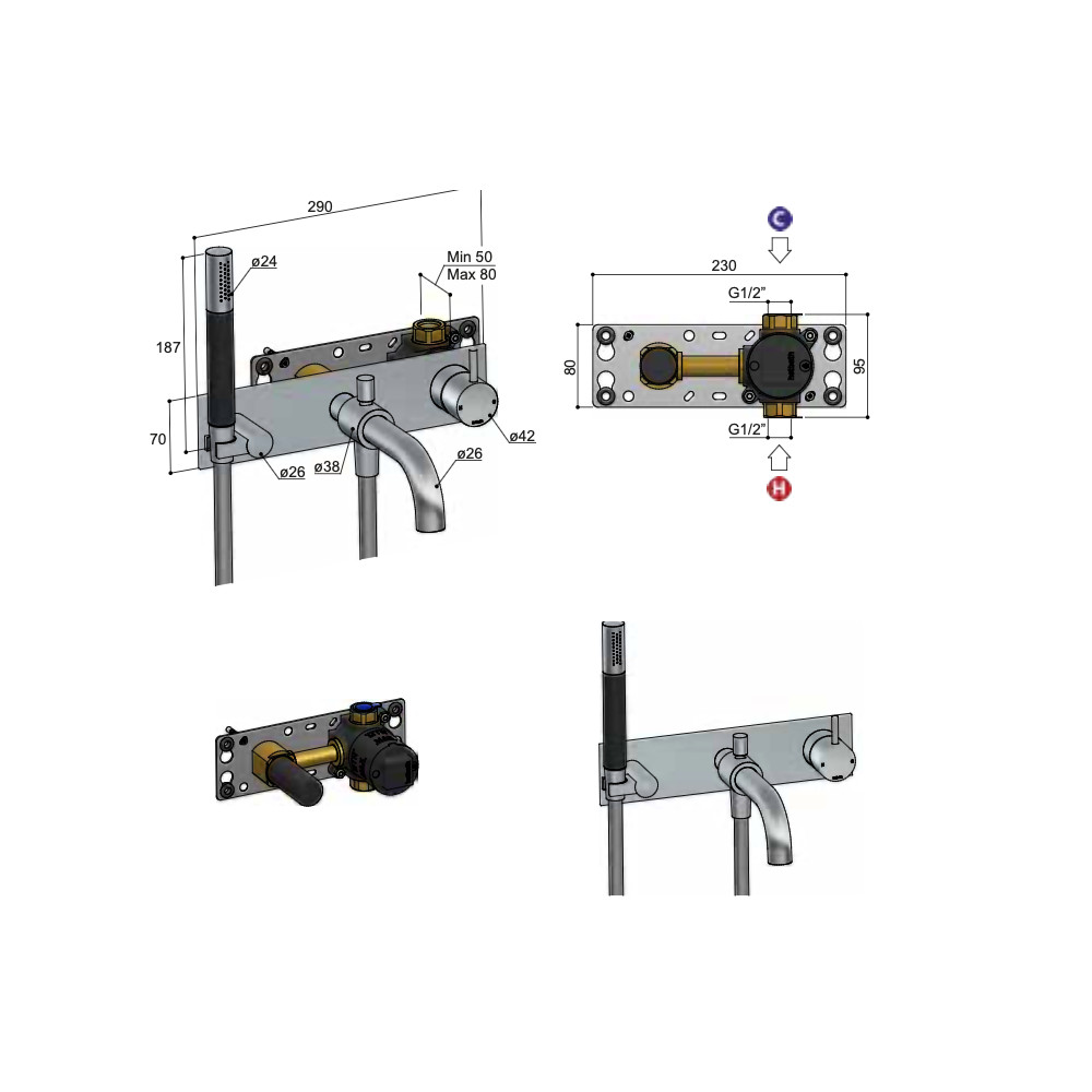 Głębokość montażu: 50 - 80 mm
