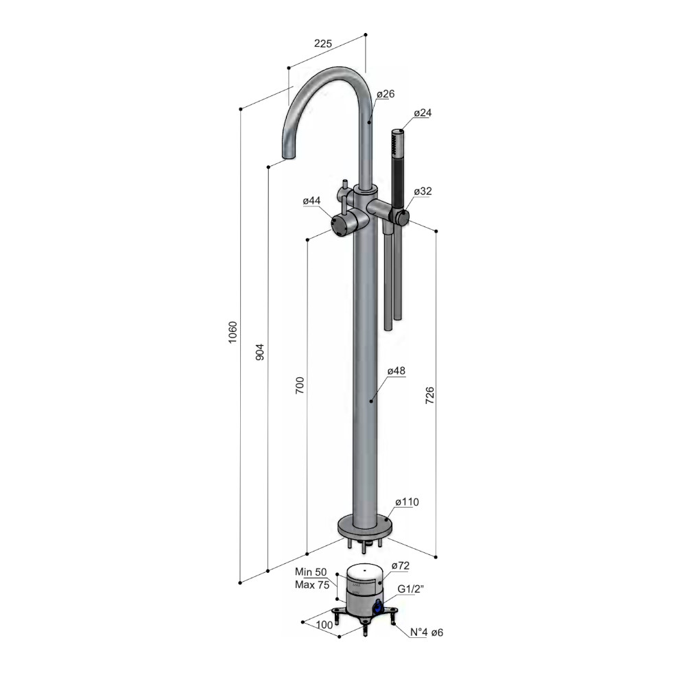 Hotbath Cobber Bateria wannowa z zestawem prysznicowym wolnostojąca Matt Black PVD CB187.MBP