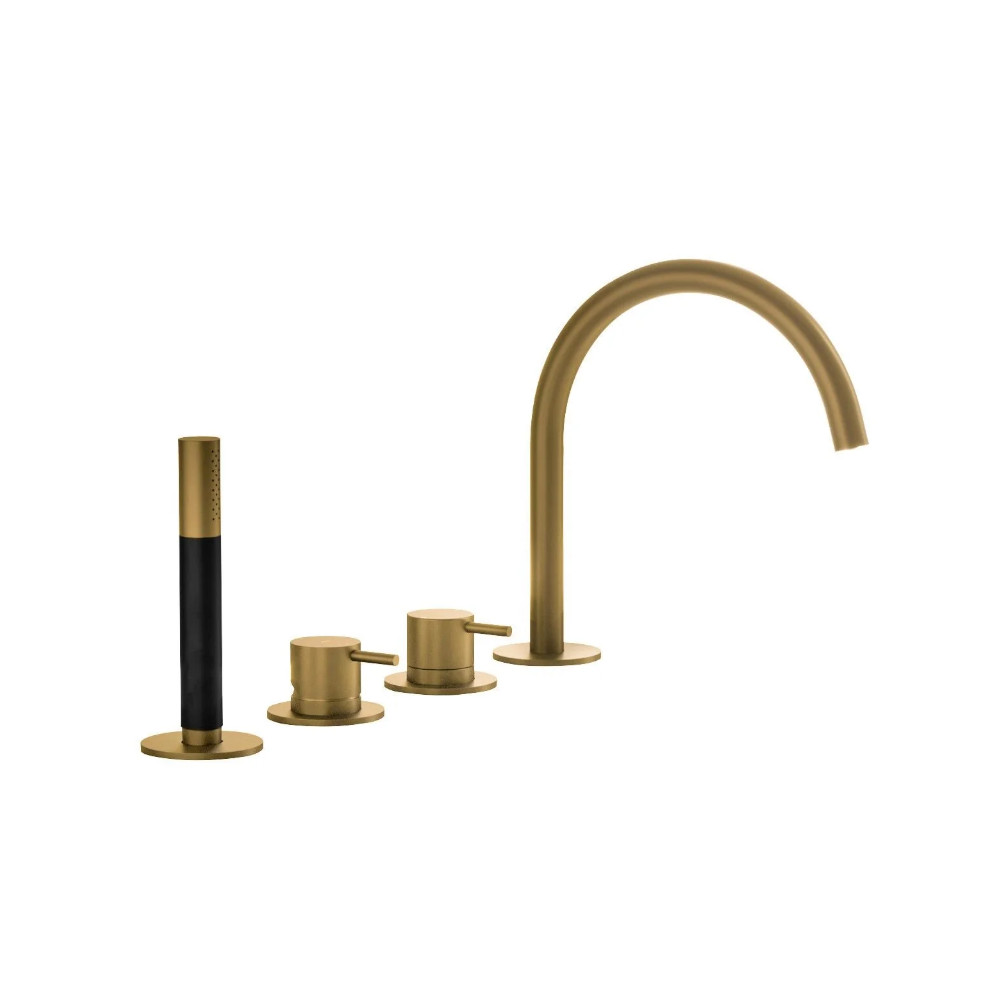 Hotbath Cobber Bateria wannowa 4-otworowa z wylewką i słuchawką prysznicową Brushed Brass CB173.BB