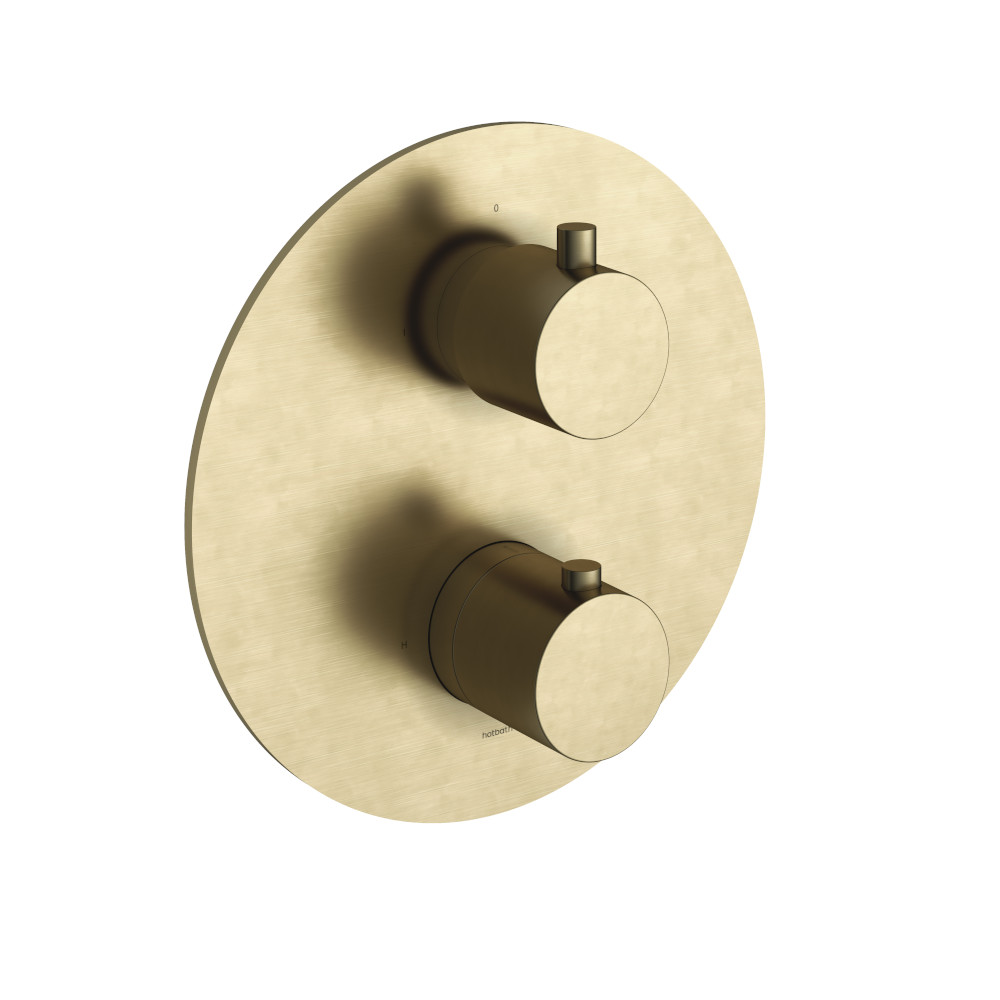 Hotbath Cobber Bateria natryskowa termostatyczna podtynkowa z 2-drożnym przełącznikiem element zewnętrzny Brushed Brass CB009.BB