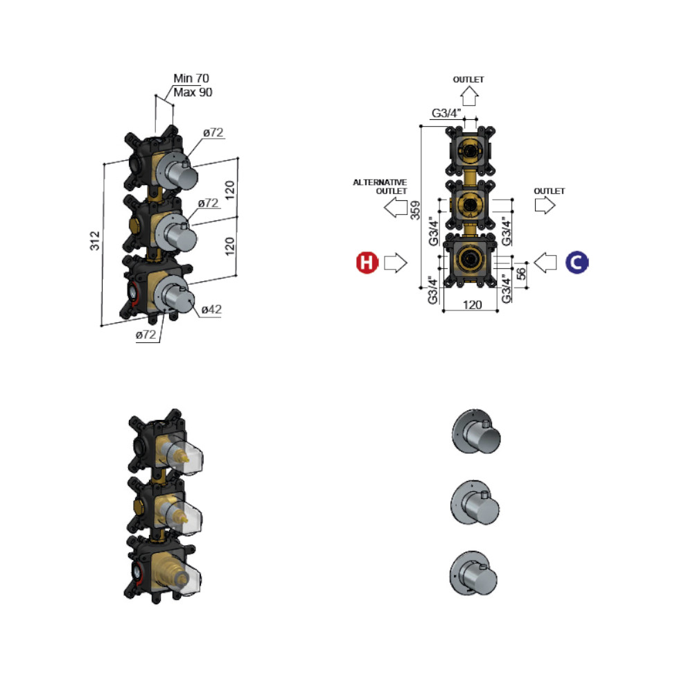 Hotbath Cobber Bateria natryskowa termostatyczna podtynkowa z 2 zaworami element zewnętrzny Brushed Copper PVD CB7066.BCP
