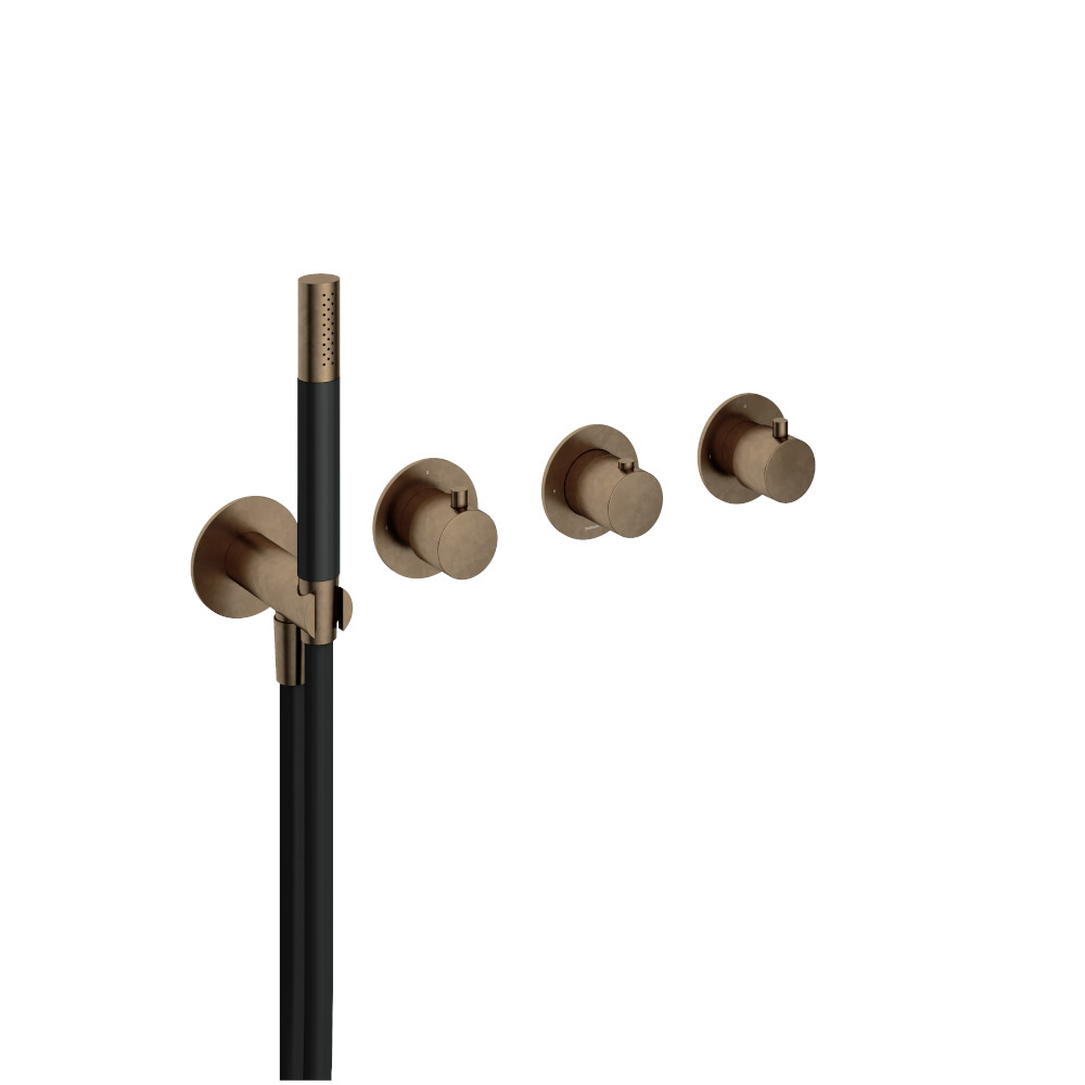Hotbath Cobber Bateria natryskowa termostatyczna podtynkowa, z dwoma zaworami i słuchawką prysznicową - element zewnętrzny Aged Brass CB7171.AB