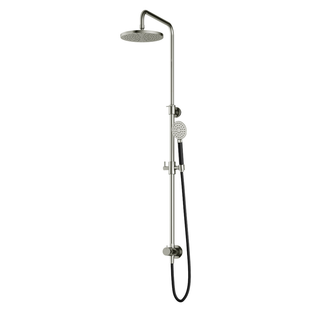 Hotbath Cobber Zestaw natryskowy z deszczownicą Ø 200 mm i zestawem prysznicowym na drążku Brushed Nickel M538.GN