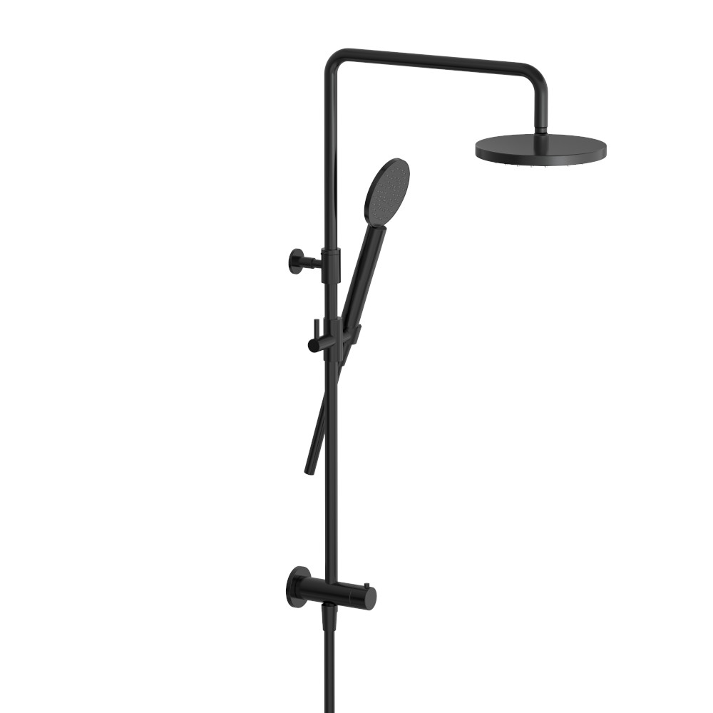 Hotbath Cobber Zestaw natryskowy z deszczownicą Ø 200 mm i zestawem prysznicowym na drążku Matt Black PVD M538.MBP
