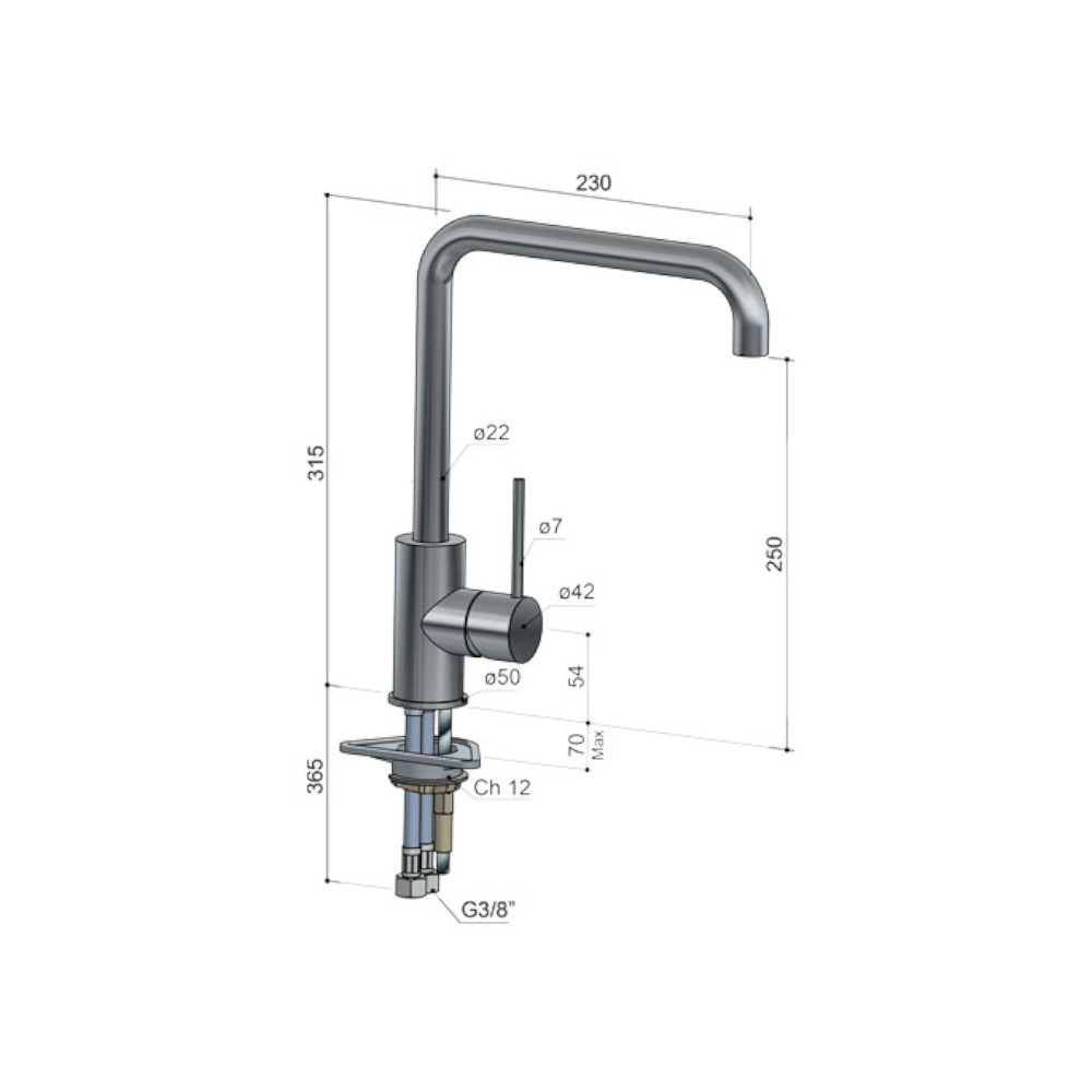 Wysokość wylewki: 250 mm