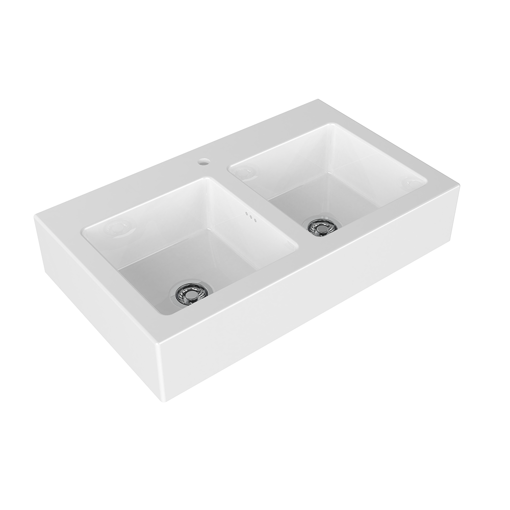 Flaminia Acquafood Zlew kuchenny podwójny stawiany na blat 100x60 biały połysk 5051AF