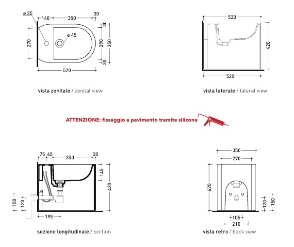 Flaminia Astra Bidet stojący 52x35 cenere matt AS217CEN