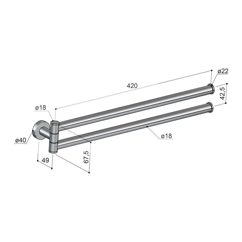 Wysięg uchwytu: 49 mm