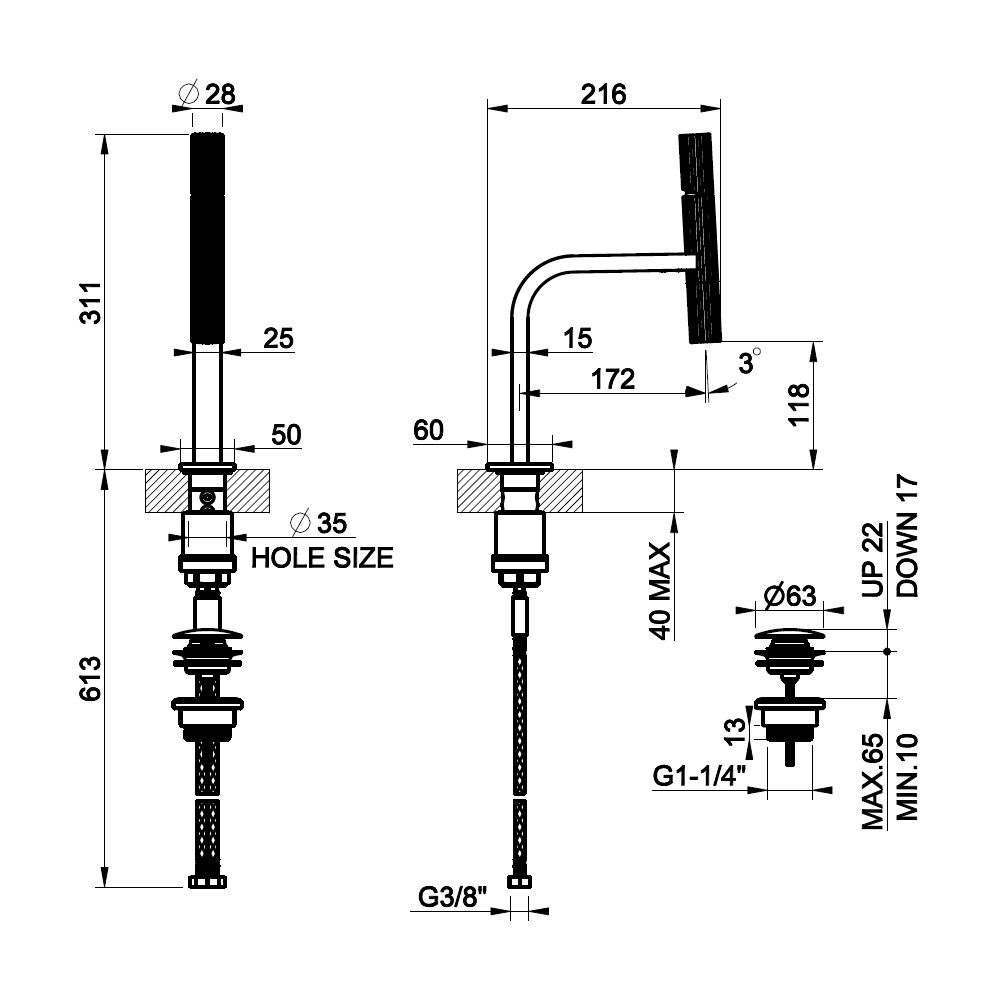 Gessi Incastri Bateria umywalkowa wisząca z korkiem klik-klak Matte Black 75251.299