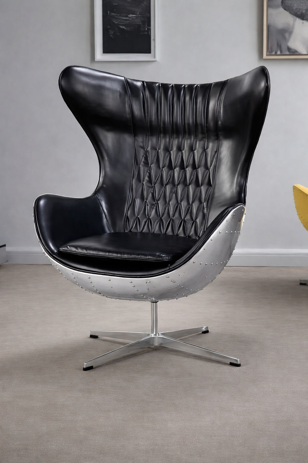 Fotel Galatea Design MONARCH to wyjątkowe połączenie nowoczesnego wzornictwa, komfortu i najwyższej jakości materiałów. Charakterystyczna, otulająca forma inspirowana ikoną stylu „egg chair” została wzbogacona o industrialny akcent w postaci nitowanego aluminium w wykończeniu chrom.
