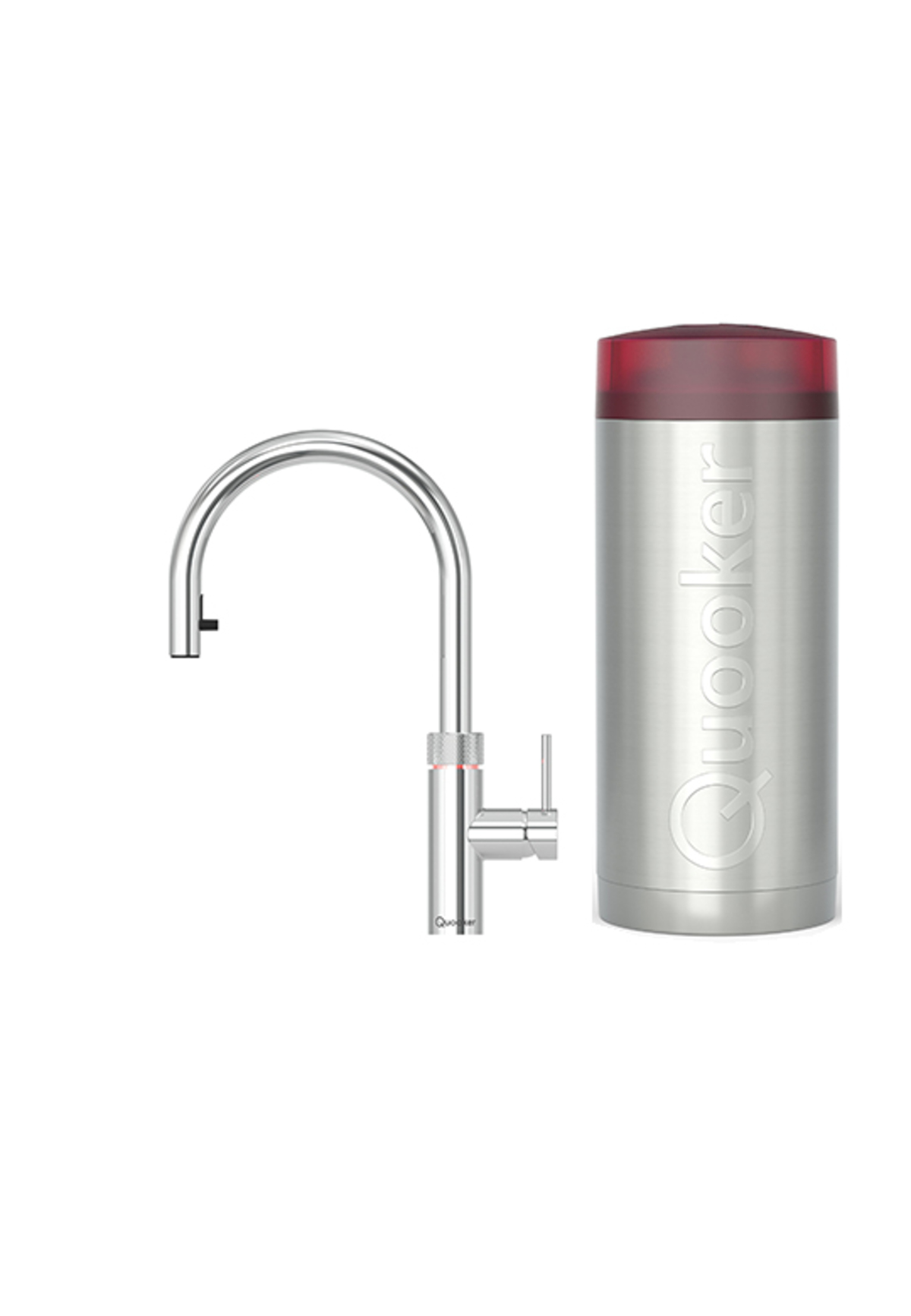 System Quooker składa się z eleganckiej baterii montowanej na blacie kuchennym oraz zbiornika instalowanego w szafce pod spodem. COMBI+ nie tylko dostarcza wodę w temperaturze 100 stopni, oraz ciepłą wodę (40 - 60 stopni), ale także łączy się z istniejącym systemem ciepłej wody. Oznacza to, że może zapewnić nieograniczone źródło ciepłej wody, łącząc wodę w zbiorniku z wodą z systemu, gdy zajdzie taka potrzeba. Quooker Flex posiada wyciąganą wylewkę, która zapewnia większy zasięg podczas płukania, czyszczenia i napełniania garnków. Wyciągana wylewka nigdy nie podaje wrzątku, co gwarantuje pełne bezpieczeństwo.