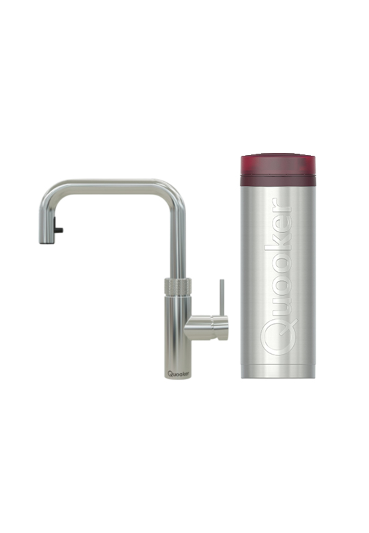 System Quooker składa się z eleganckiej baterii montowanej na blacie kuchennym oraz zbiornika instalowanego w szafce pod spodem. Zbiornik PRO3 dostarcza wrzącą wodę o temperaturze 100 stopni bezpośrednio z kranu Quooker. Zwykła ciepła i zimna woda doprowadzana jest ze standardowego domowego źródła wody. Quooker Flex posiada wyciąganą wylewkę, która zapewnia większy zasięg podczas płukania, czyszczenia i napełniania garnków. Wyciągana wylewka nigdy nie podaje wrzątku, co gwarantuje pełne bezpieczeństwo.