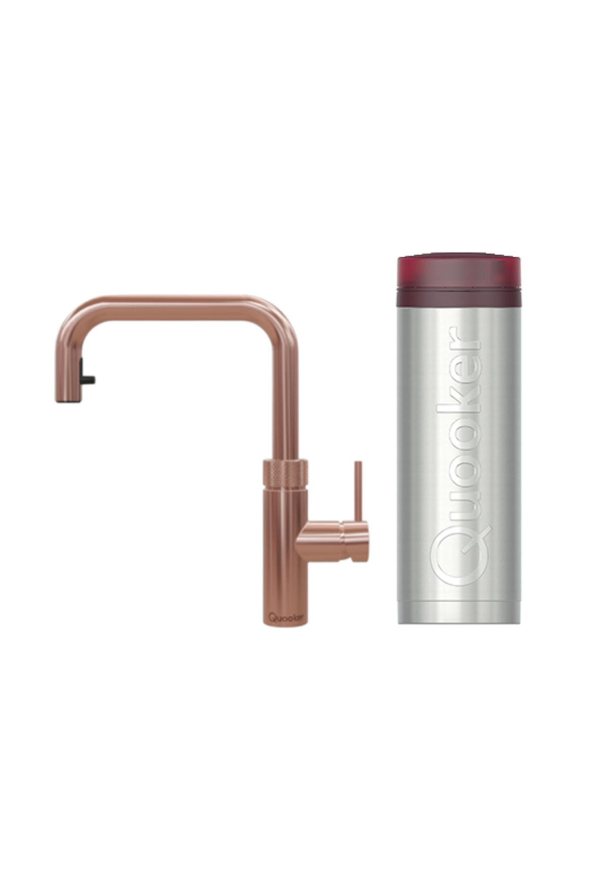 Quooker Zestaw bateria kuchenna z wyciąganą wylewką Flex Square plus zbiornik HOT 3L PRO3 Różowa miedź