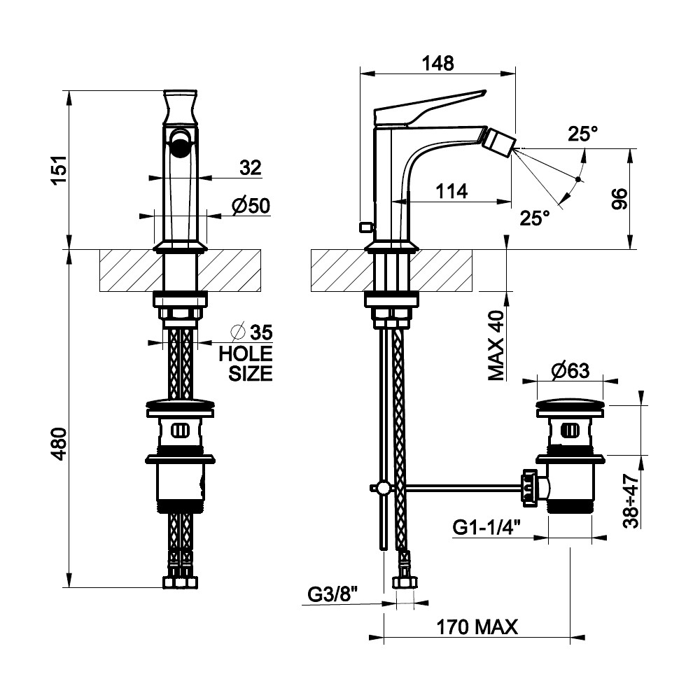 Gessi Ventaglio Bateria bidetowa z korkiem klik-klak Copper Brushed PVD 72007.708