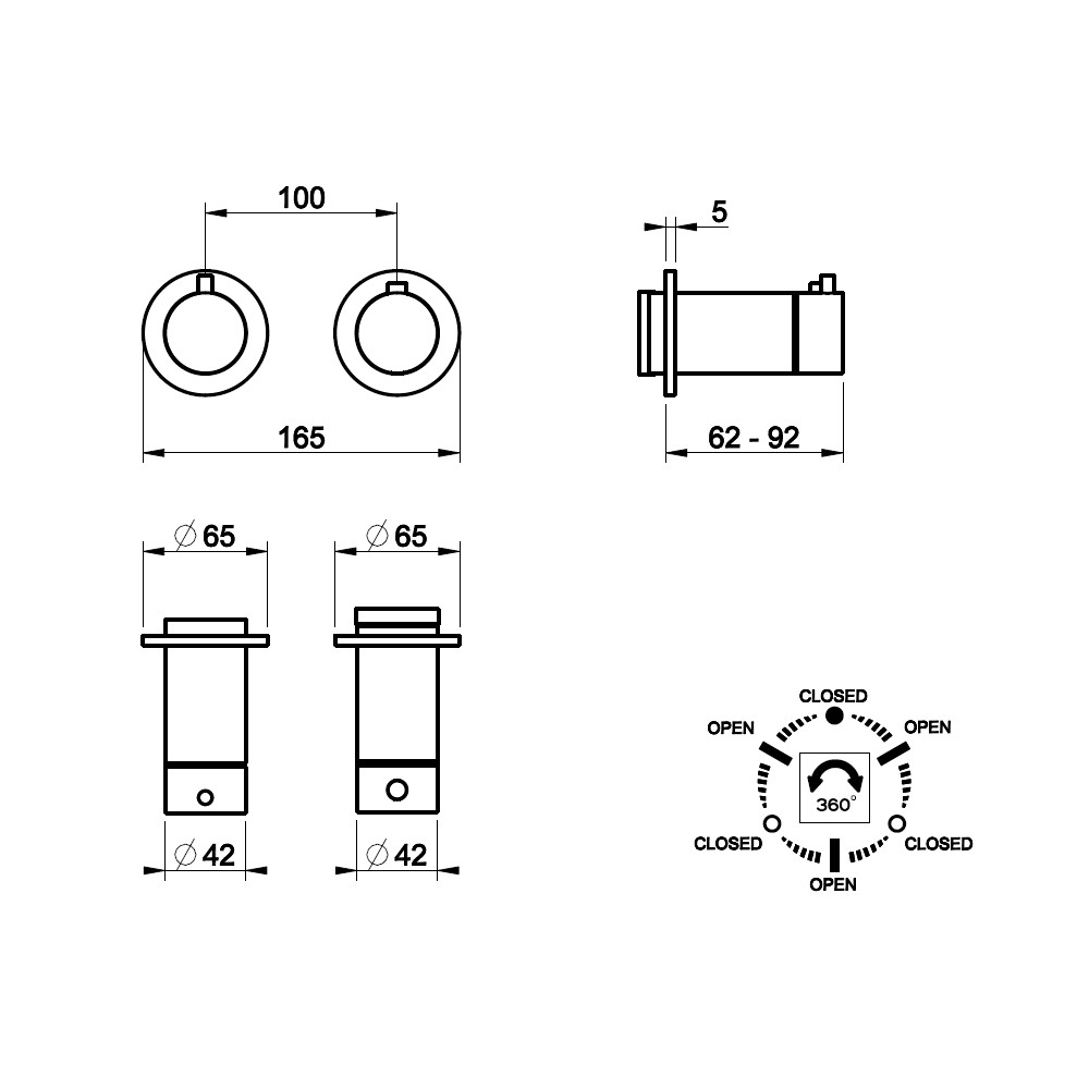 Średnica rozet: 65 mm