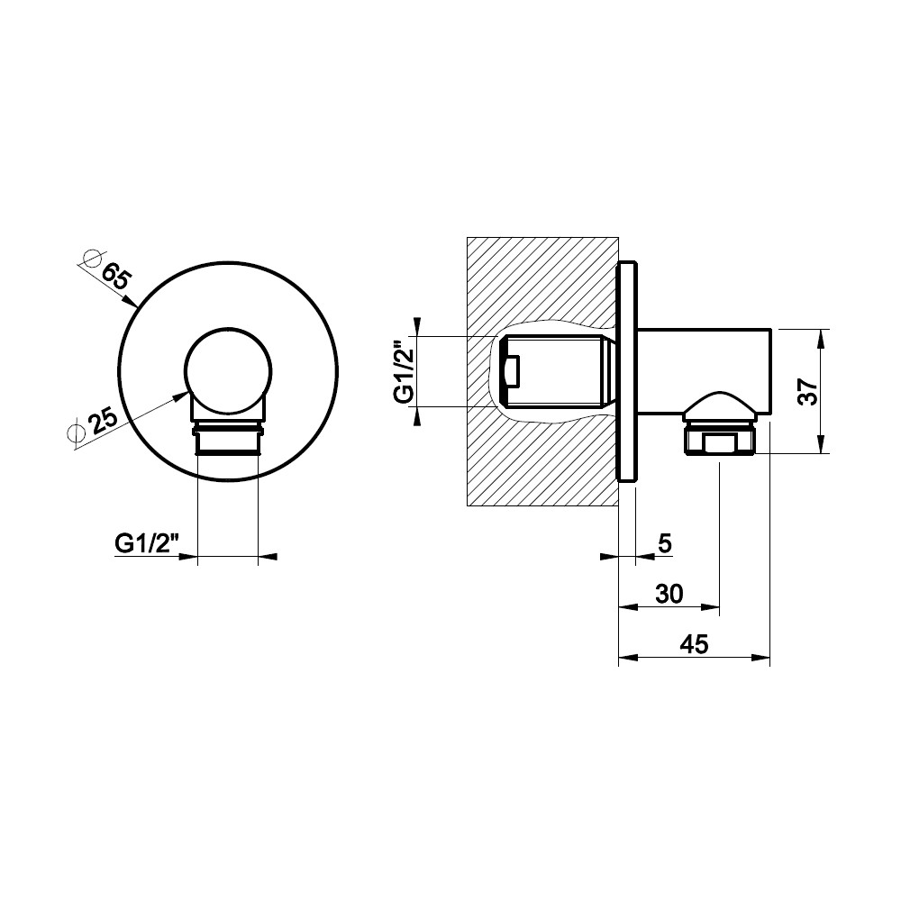 Gessi Ventaglio Przyłącze wody Black Metal Brushed PVD 63469.707