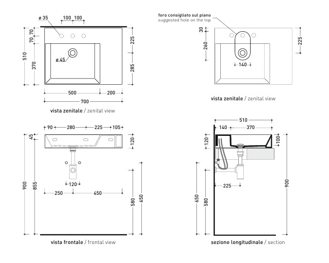 Flaminia App Umywalka stawiana 70×51 argilla matt AP7051ARG