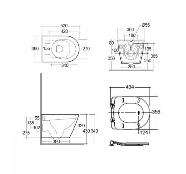 Kludi Resa S Miska bezrantowa 52x36 z deską wolnoopadającą wisząca spłukiwanie wirowe biały 23WCSET43