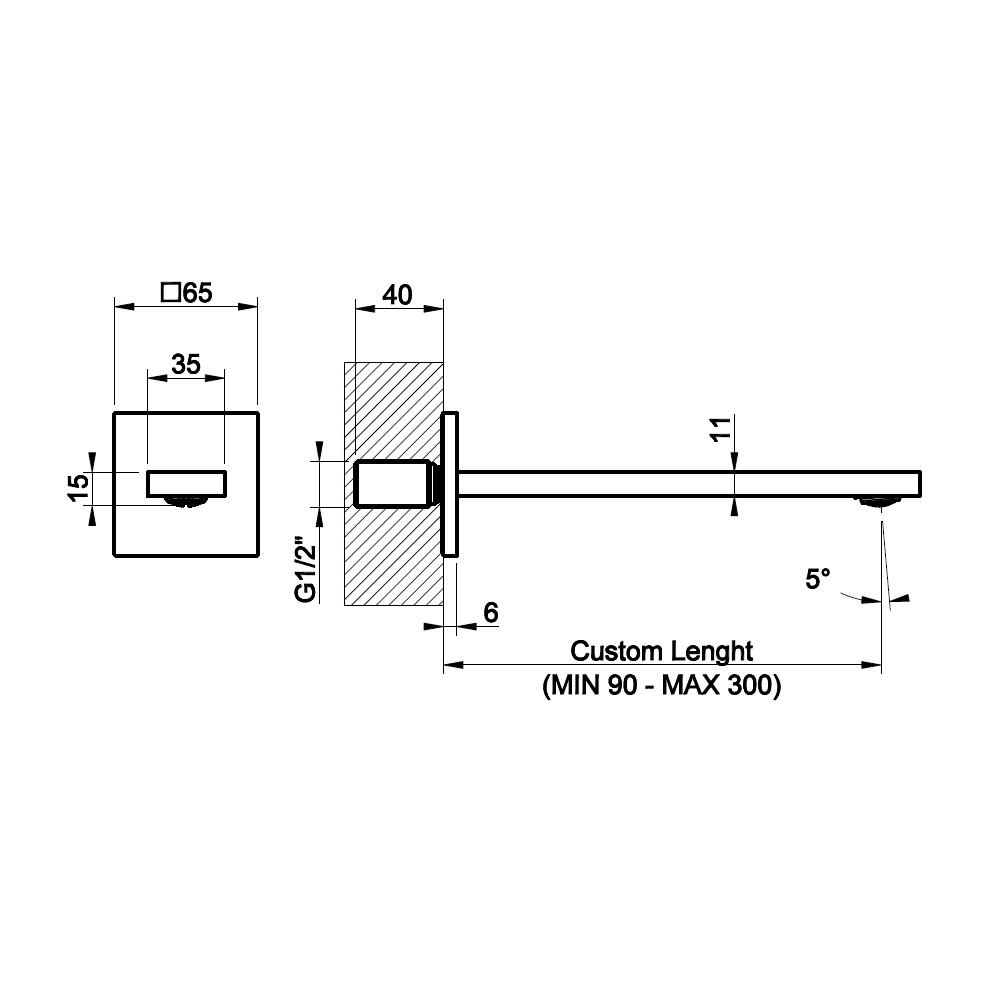 Wysięg wylewki (na zamówienie): min.90 mm - max 300 mm