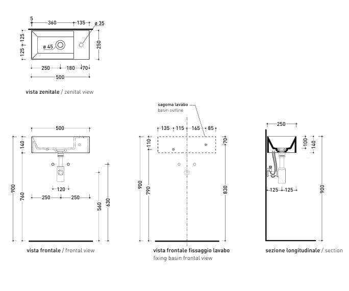 Flaminia App Umywalka ścienna 50x25 biały połysk AP5025DX