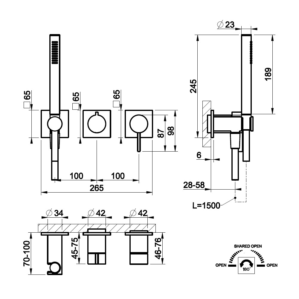 Gessi Inverso Diamantato Bateria prysznicowa z przełącznikiem 2-drożnym ze słuchawką i wężem - element zewnętrzny Warm Bronze Brushed PVD 73636.726