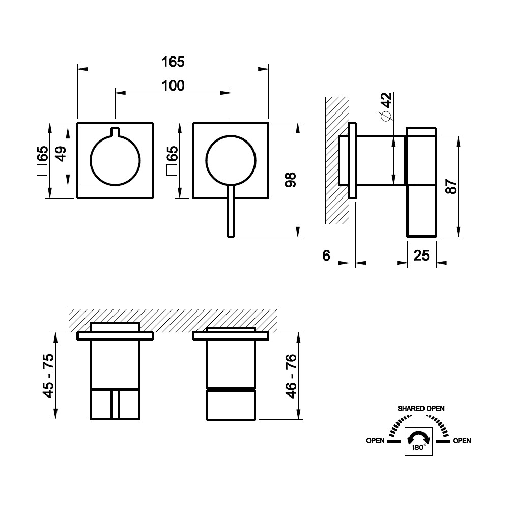 Gessi Inverso Diamantato Bateria prysznicowa podtynkowa 2-drożna - element zewnętrzny Warm Bronze Brushed PVD 73638.726